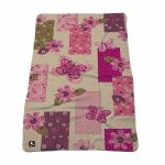 Toalha microfibra PATCHWORK esta decorada com um tecido estampado de um delicado MIX AND MATCH de flores rosa e bordo com toques de bege que combinam infinitamente. Em peças grandes, uma borboleta bordada é aplicada com tecido acolchoado que pode mover suas asas. Zíper e forros em cor fúcsia e tiras de grama verde.